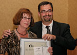 This year's recipient of a CCNA Silver Quill is Carol Farnalls, publisher of the Barrhead Leader, presented by Brian Bachynski.